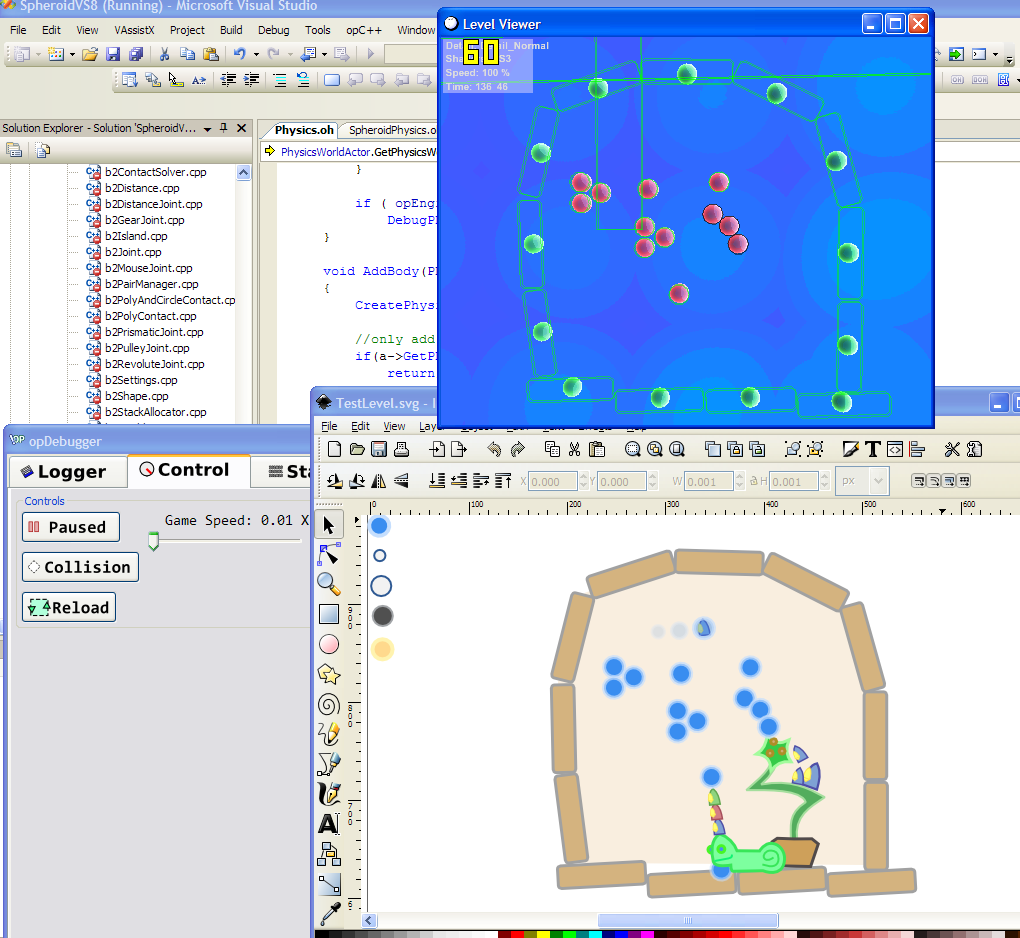 This image shows our initial integration with svg/inkscape import of levels.