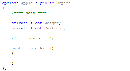 Notice the improved specifiers, available in opclass and any category in opC++.